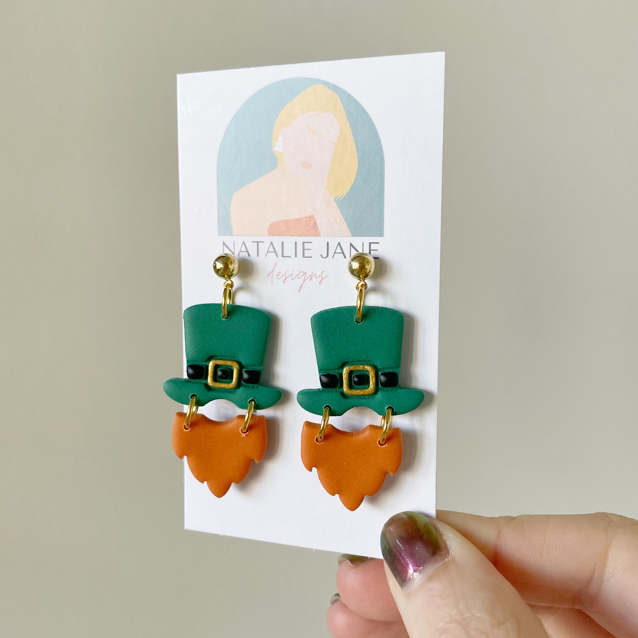 This leprechaun dangle is made from polymer clay and features: